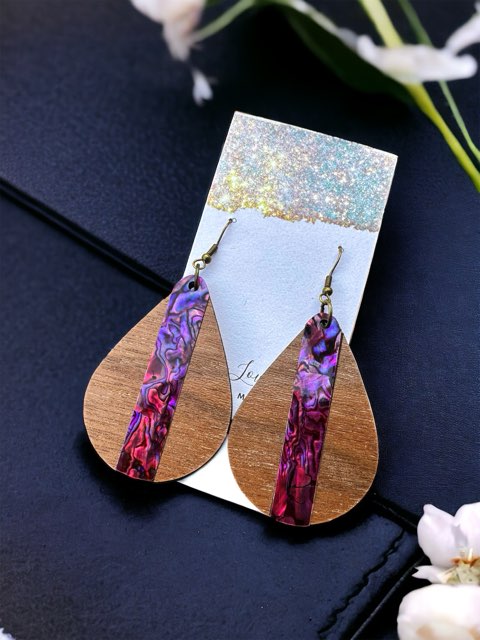 Abalone Inlay Wood Earrings